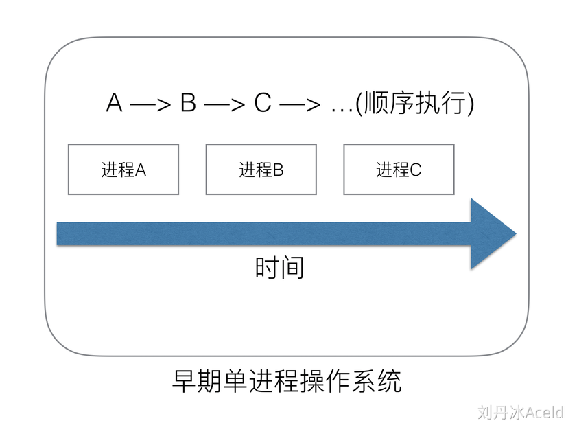 我们知道,一切的软件都是跑在操作系统上,真正用来干活(计算)的是CPU。早期的操作系统每个程序就是一个进程,知道一个程序运行完,才能进行下一个进程,就是“单进程时代”