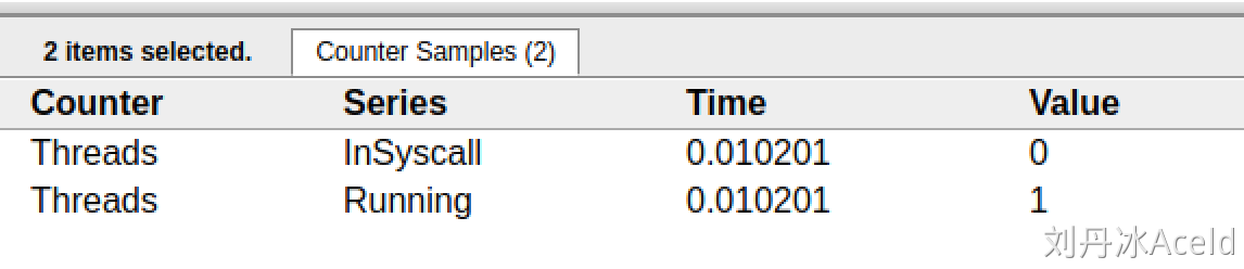 点击Threads那一行可视化的数据条,我们会看到一些详细的信息。