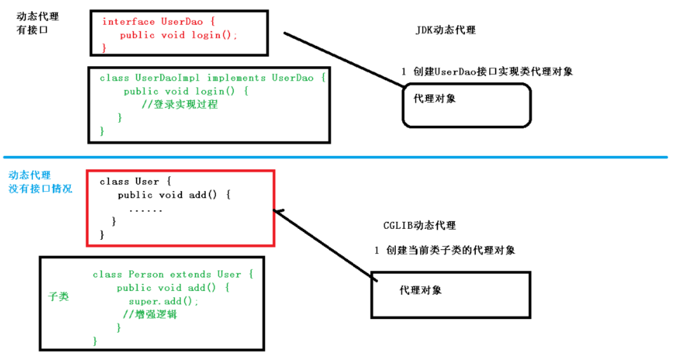 - 创建接口实现类代理对象,增强类的方法