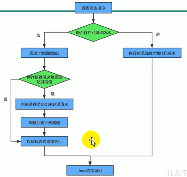 它的作用是统计一个方法中循环体代码执行的次数,在字节码中遇到控制流向后跳转的指令称为“回边”(Back Edge)。显然,建立回边计数器统计的目的就是为了触发 OSR 编译。