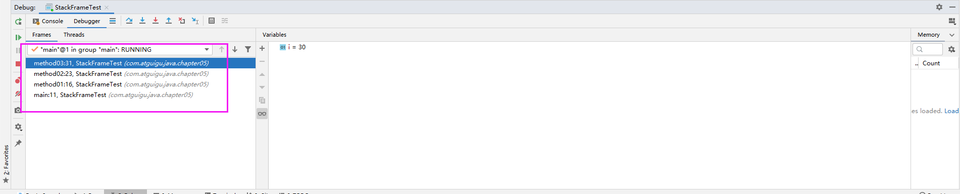 满足栈先进后出的概念,通过 Idea 的 DEBUG ,能够看到栈信息