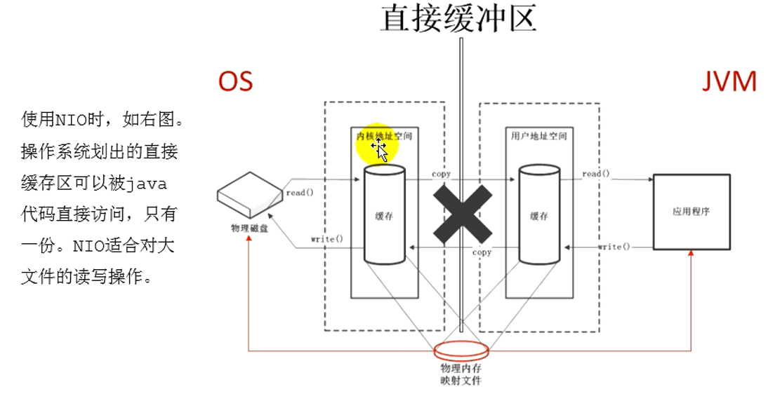 • 因此出于性能考虑,读写频繁的场合可能会考虑使用直接内存