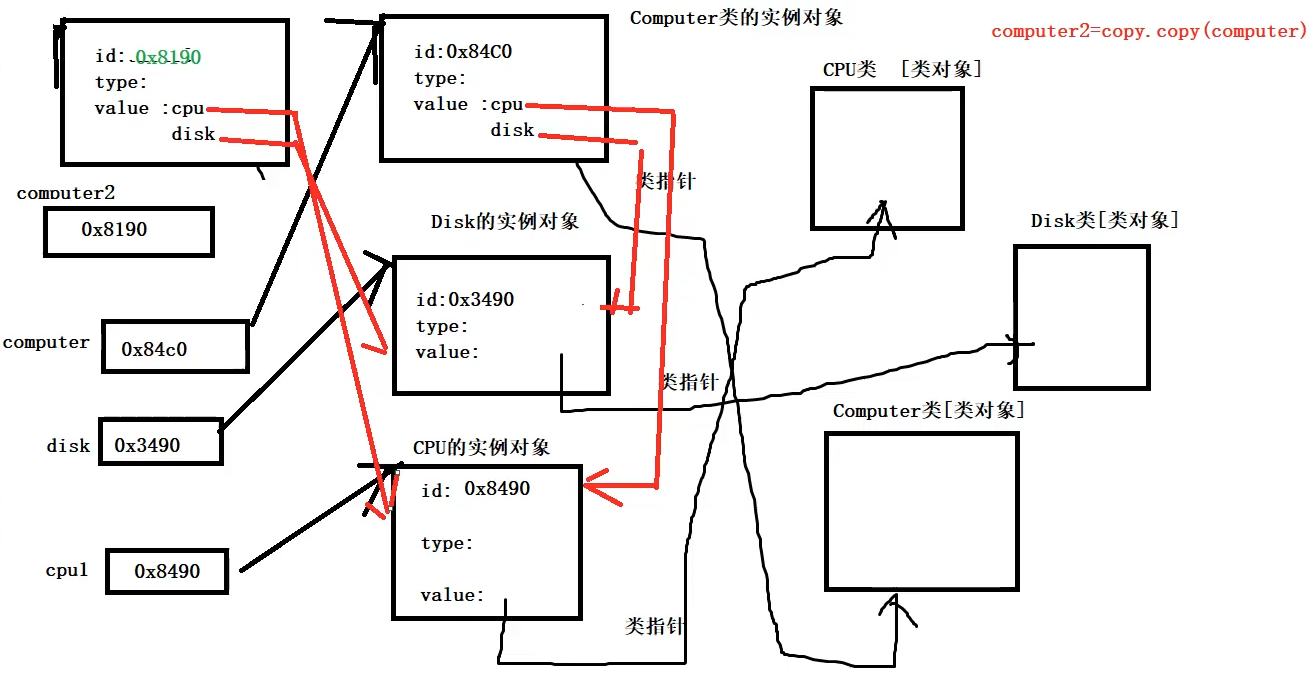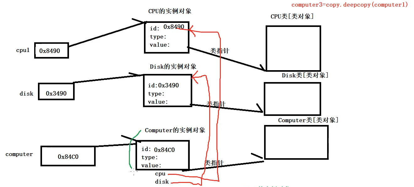 - 使用copy模块的deepcopy函数,递归拷贝对象中包含的子对象,源对象和拷贝对象所有的子对象也不相同