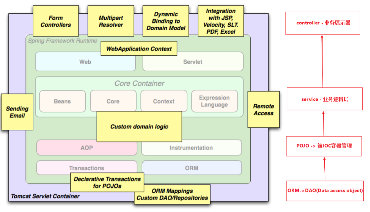 - 一类称为业务处理 Bean:指 Service 或 Dao 对象,专门用于处理业务逻辑和数据访问。