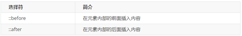 - before 在父元素内容的前面创建元素,after 在父元素内容的后面插入元素 伪元素选择器和标签选择器一样,权重为 1
